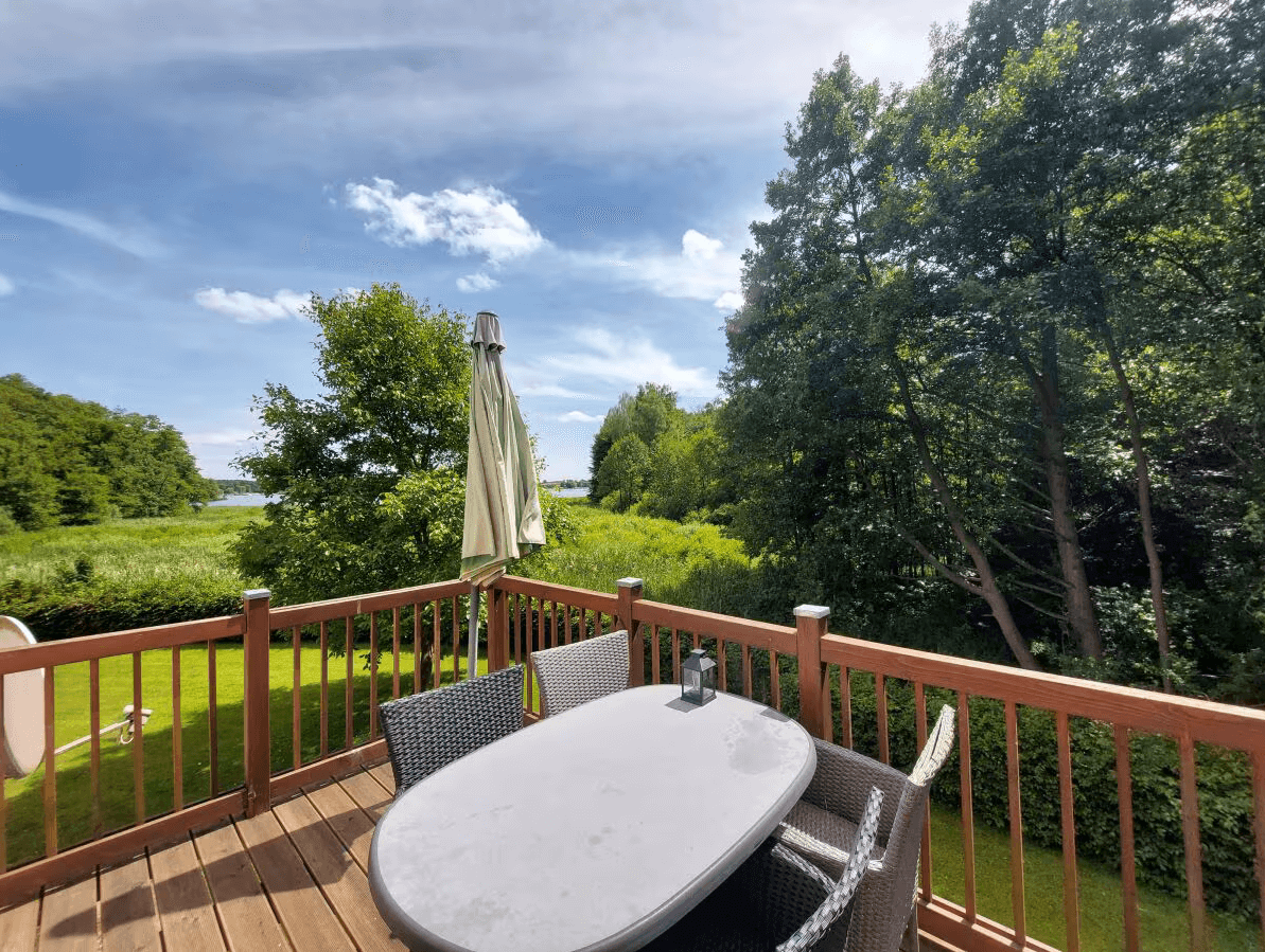 Darüber hinaus steht allen Gästen der direkte Seezugang mit privater Badestelle, die hauseigene Sauna und der Gemeinschaftsgrillplatz auf dem großzügigen Grundstück im Wald zur Verfügung.